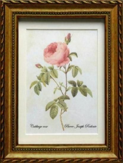 渋いゴールドブラウンの落ち着いた華やかな額フレームがルドゥーテの植物画を引き立てます。
