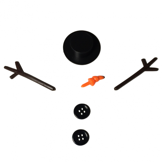 スノーマン 小物セット 大タイプは、かわいいスノーマンを作りたい方にぴったりのアイテムです。このセットには、直径約35mmの帽子、長さ約15mmのプラスチックノーズ、長さ53mmの枝2本、そして直径約15mmのボタン2個が含まれています。